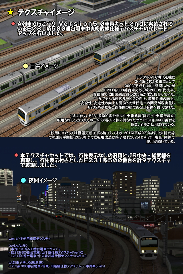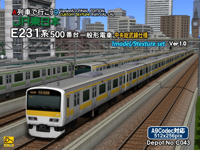 No.C043【A列車で行こう9車両バリエーションテクスチャ】 JR東日本 E231系500番台一般形電車/中央総武線仕様テクスチャ Ver1.0